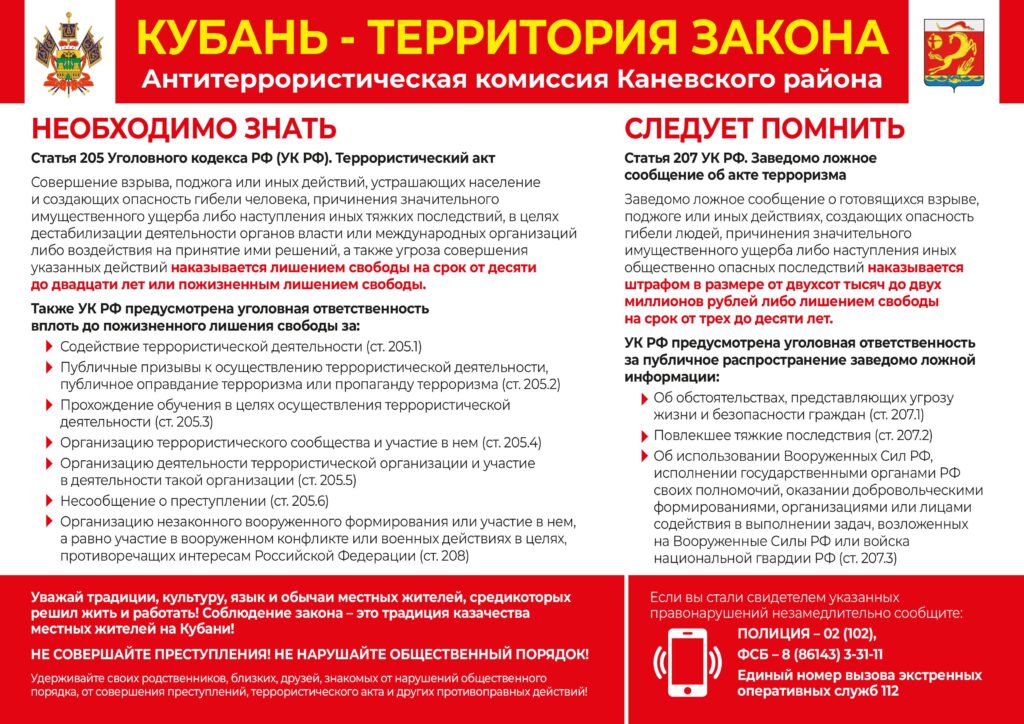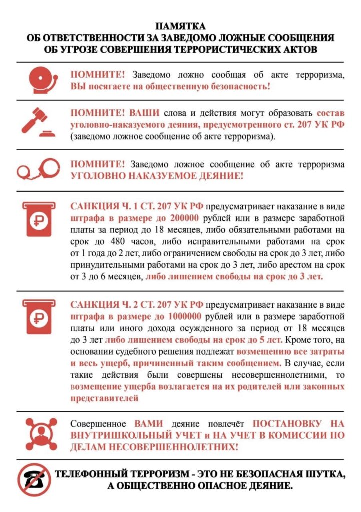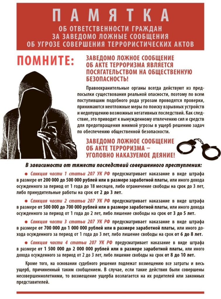 Информационные материалы, направленные на доведение до населения сведений о результатах работы по предотвращению актов незаконного вмешательства в деятельность критически важных и потенциально — опасных объектов, пресечению деятельности лиц, распространяющих ложные сведения об угрозах совершения на них террористических актов, а также о тяжести последствий указанных деяний и неотвратимости наказания.