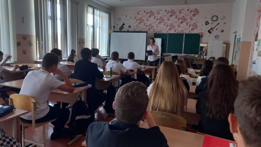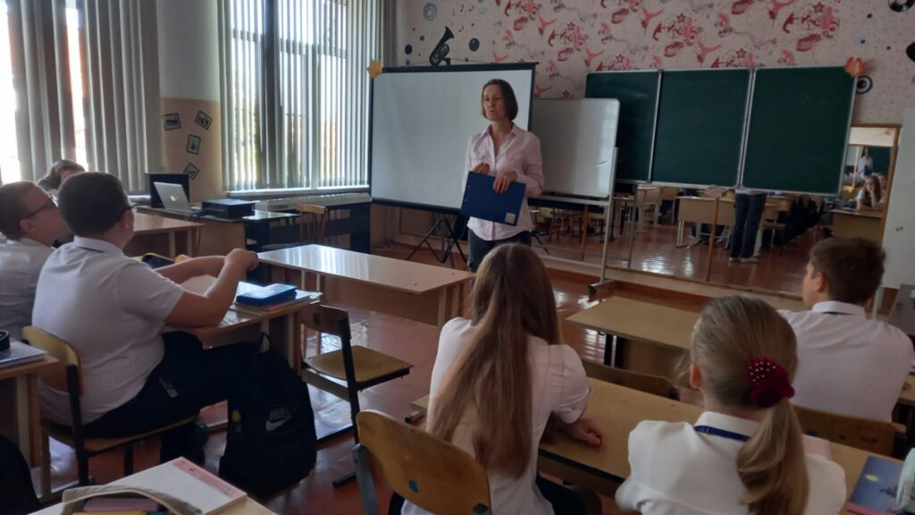 23 сентября 2025 года в стенах СОШ №5 специалист Дома культуры станицы Стародеревянковской провела тематический час «Кубанская семья, мы славим тебя», посвященный Дню Кубанской семьи. Специально для любознательных семиклассников 7 «А» класса Татьяна Донскова приоткрыла завесу веков, повествуя о традиционном укладе казачьей семьи, о незыблемой важности сохранения и почитания семейных традиций, словно драгоценного наследия кубанского казачества.