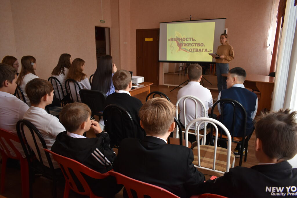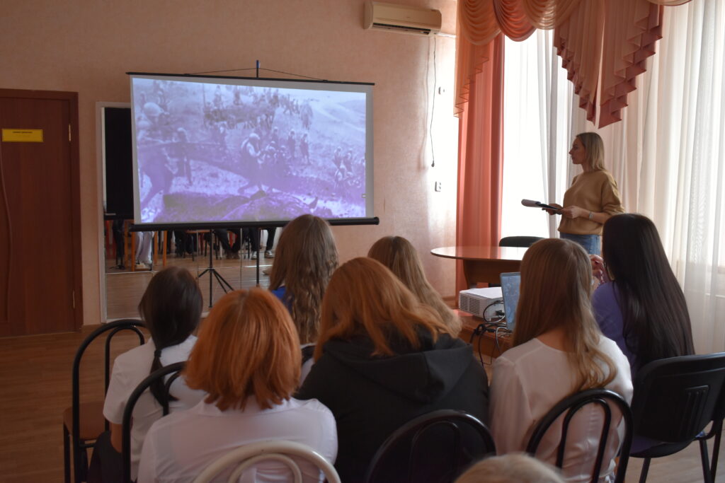 В начале мероприятия, культорганизатор Марина Гончаренко рассказала ребятам об истории создания этого праздника, что вдохновило поэта Расула Гамзатова написать стихотворение «Журавли», которое в последствии стало всемирно известным. В конце беседы, учащиеся прослушали песню «Журавли» в исполнении Марка Бернеса.
