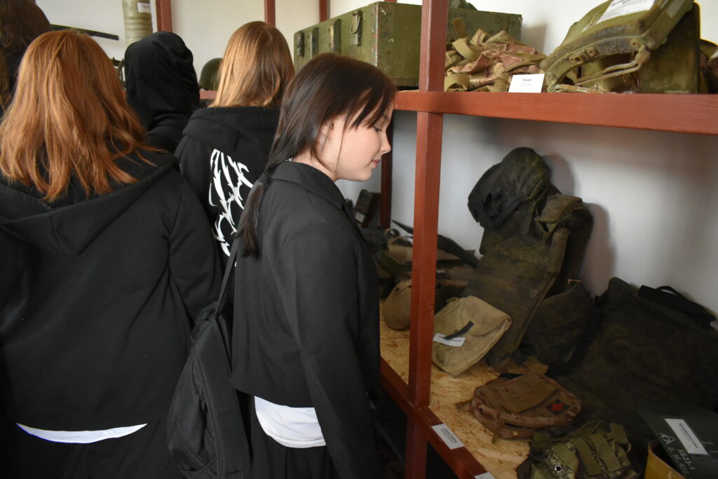 Далее, ребята посетили уголок военно-патриотического клуба «Патриот», в котором собраны экспонаты из мест боевых действий. Учащиеся увидели личные вещи солдат, услышали истории о том, какими трудностями приходилось сталкиваться нашим предкам.