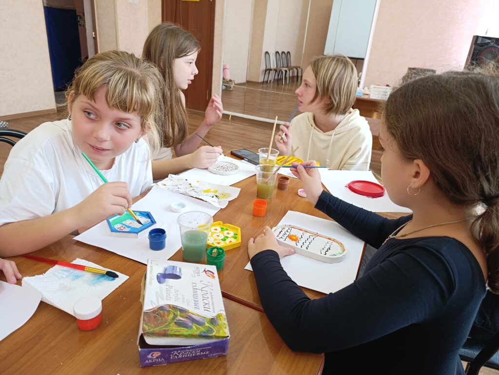 Руководитель кружка, Ольга Путинцева, продолжила знакомить ребят с тонкостями гипсомодельного ремесла. Она не только раскрыла секреты правильного покрытия гипсовых заготовок красками, чтобы они долго радовали глаз, но и показала, какие материалы лучше использовать для достижения стойкости и яркости цвета. Она также продемонстрировала разнообразные техники нанесения узоров, показывая, как можно создать уникальные и оригинальные дизайны.