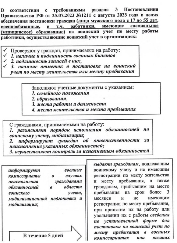 Памятка о реализации организациями-работодателями обязанностей по осуществлению воинского учета граждан