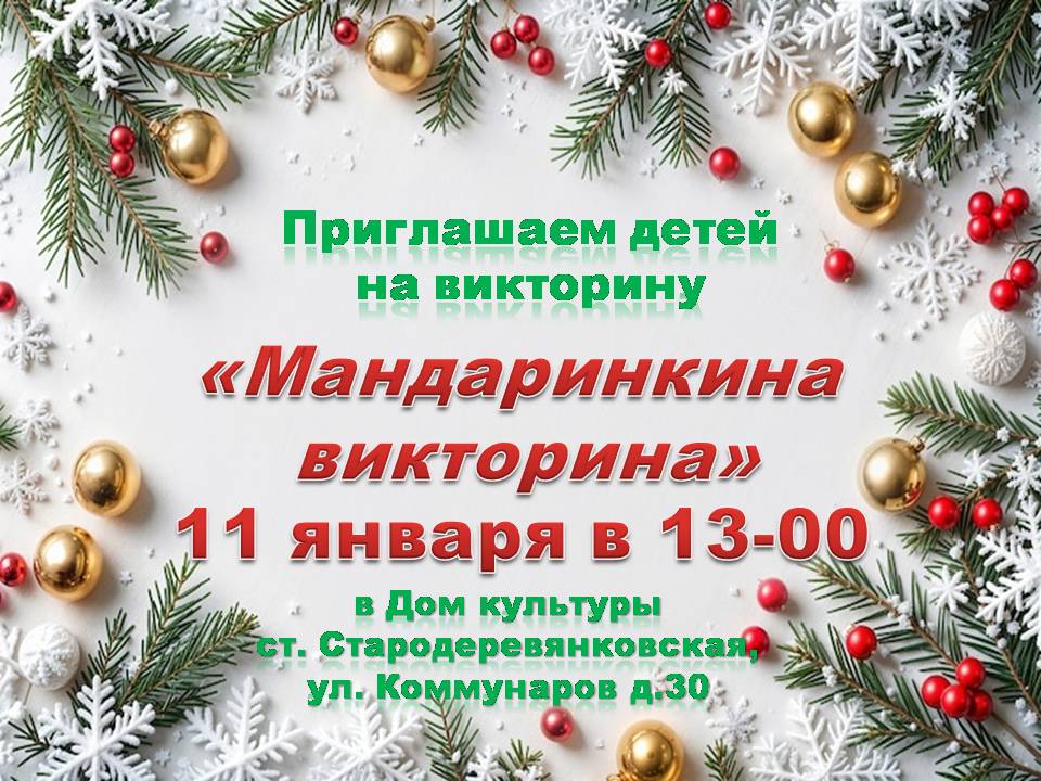 А завтра, в 13:00, мы ждем вас на мастер-классе «Зимней сказочной порой» и увлекательной «Мандаринкиной викторине»!
