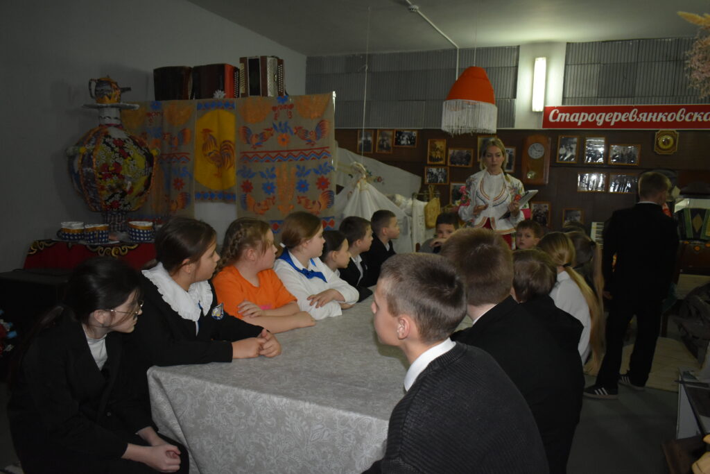 Мероприятие началось с экскурсии в музейную комнату «Родная станица». Учащиеся узнали, что каждый день масленичной недели имеет свое название и значение, почему блин считается символом солнца.