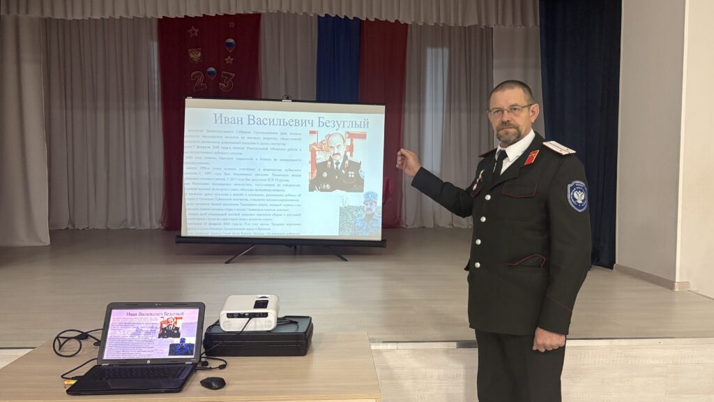 С презентацией выступил первый заместитель атамана Каневского районного казачьего общества, хорунжий Черкас Юрий Владимирович. Его презентация была посвящена богатой истории и традициям казачества. В ходе своего выступления он привел множество интересных фактов о жизни казаков, их военных подвигах и роли в истории России. Учеников особенно заинтересовали рассказы о знаменитых казаках, их смелости и патриотизме.