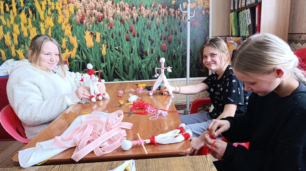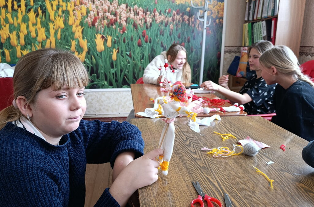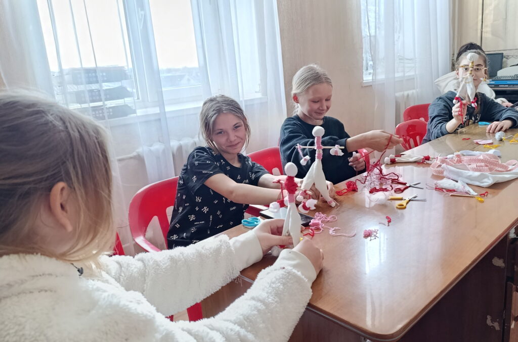 22 февраля 2026 года в Доме культуры станицы Стародеревянковская состоялась встреча участников кружка декоративно-прикладного искусства «Радуга идей». Руководитель кружка Ольга Путинцева провела для ребят мастер-класс под необычным названием «Старина нарядная». В этот день участники своими руками мастерили народных тряпичных кукол-кулачников — традиционных оберегов и символов русской культуры.