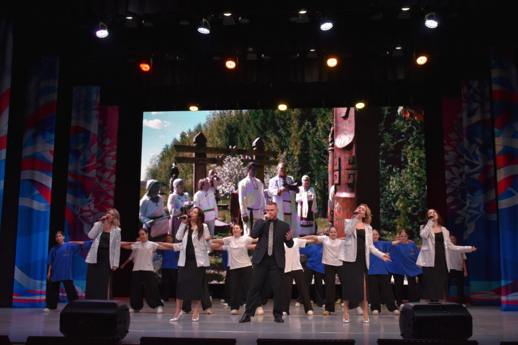 На сцене звучали музыкальные подарки творческих коллективов Каневского района. От работников культуры Стародеревянковского сельского поселения музыкальный номер всем присутствующим подарили вокальная группа «Раздолье» и коллектив современного танца «Резонанс».
