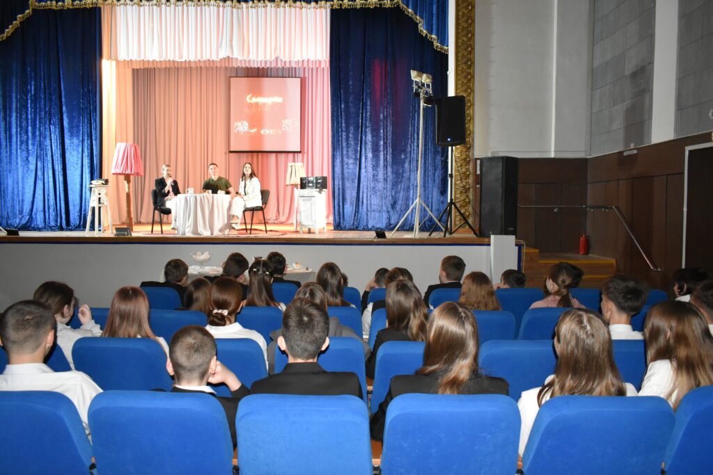С первых нот Даниил погрузил ребят в мир музыки, исполнив несколько своих композиций. Глаза семиклассников сияли от любопытства, они с восторгом внимали каждому слову, а затем, проявив удивительную активность, засыпали артиста вопросами, демонстрируя искреннее увлечение его творчеством.